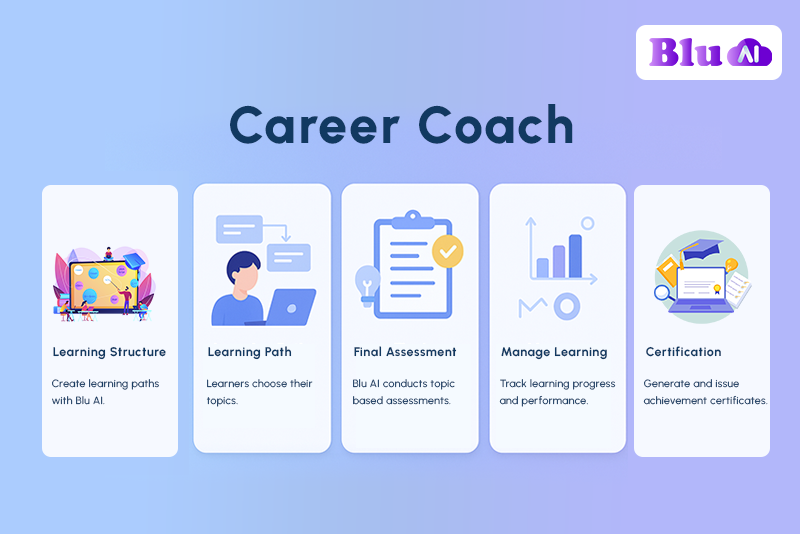 Empower your workforce with a built-in AI Career Coach that helps employees set goals, track performance, and access personalized learning paths. GoBlu.AI analyzes strengths and opportunities to recommend the right moves for career advancement.
